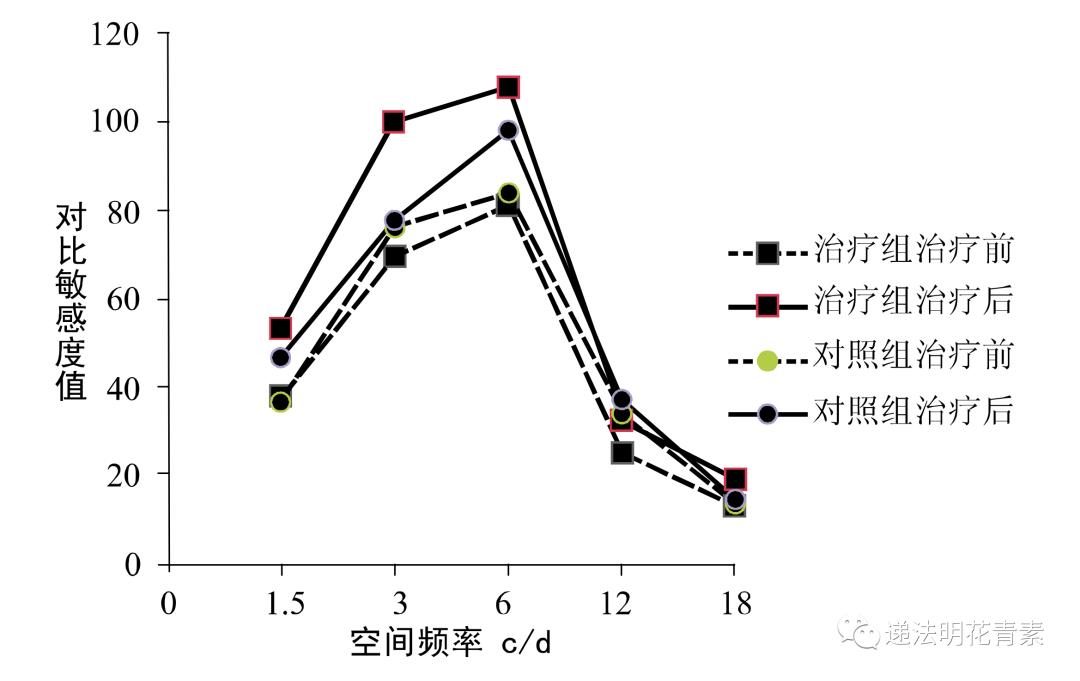 (非弱視眼治療前后對(duì)比敏感度曲線)